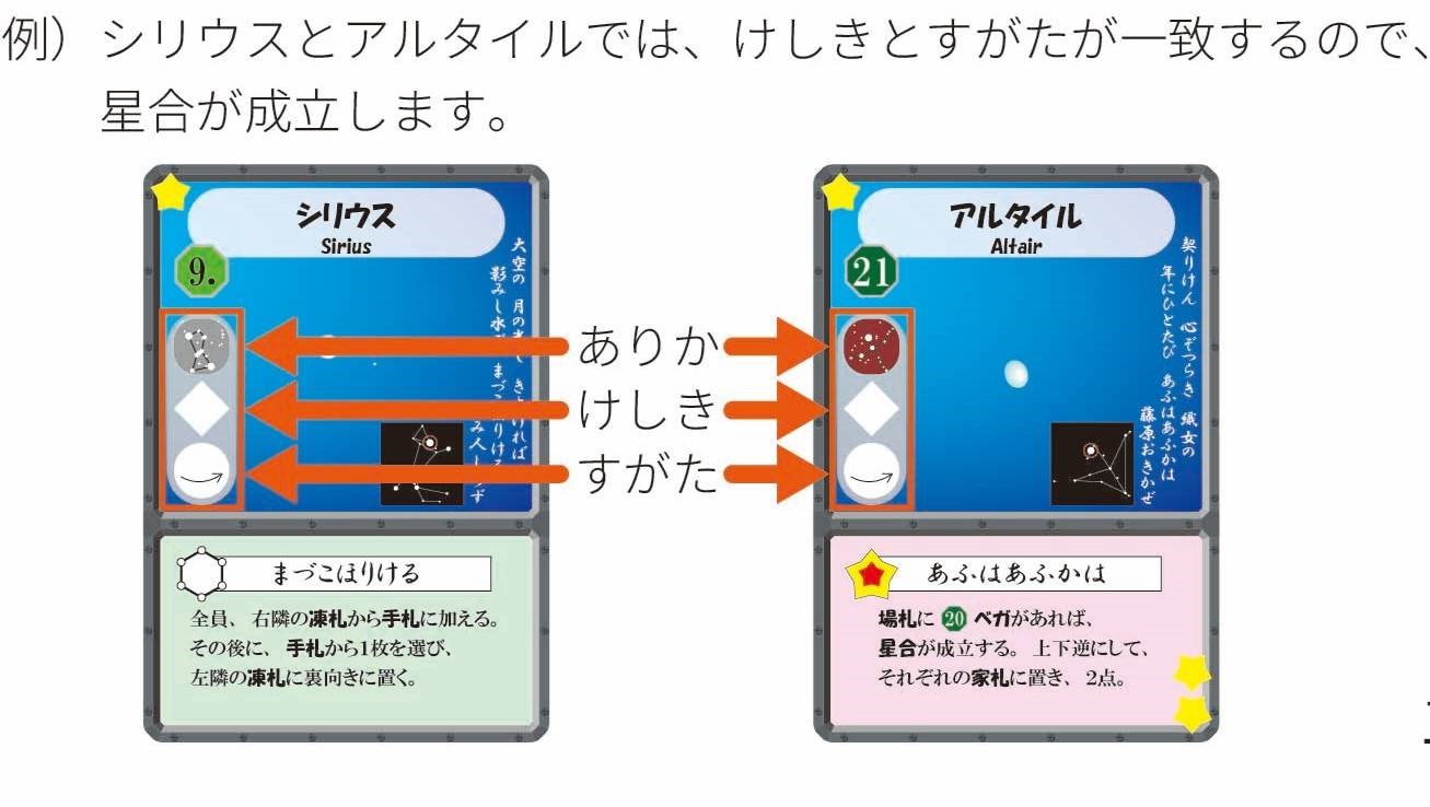 相性の良いカードを同時に出すことで、ペア(星合)をつくることを目指すゲームです。