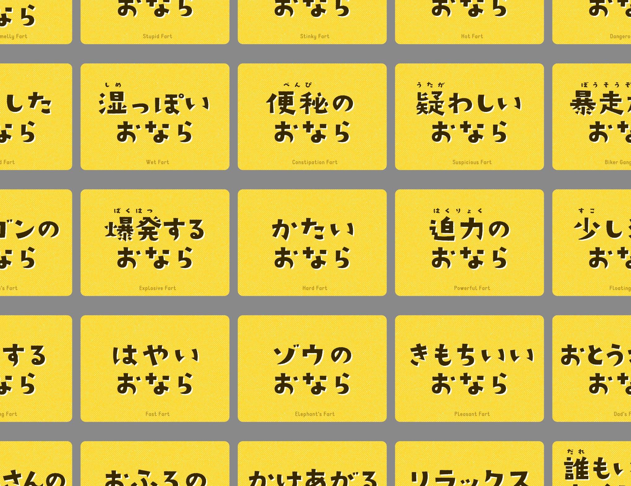 - おならカードの組合せは狂気の800万通り超え!子どもから大人までおならを楽しめます。