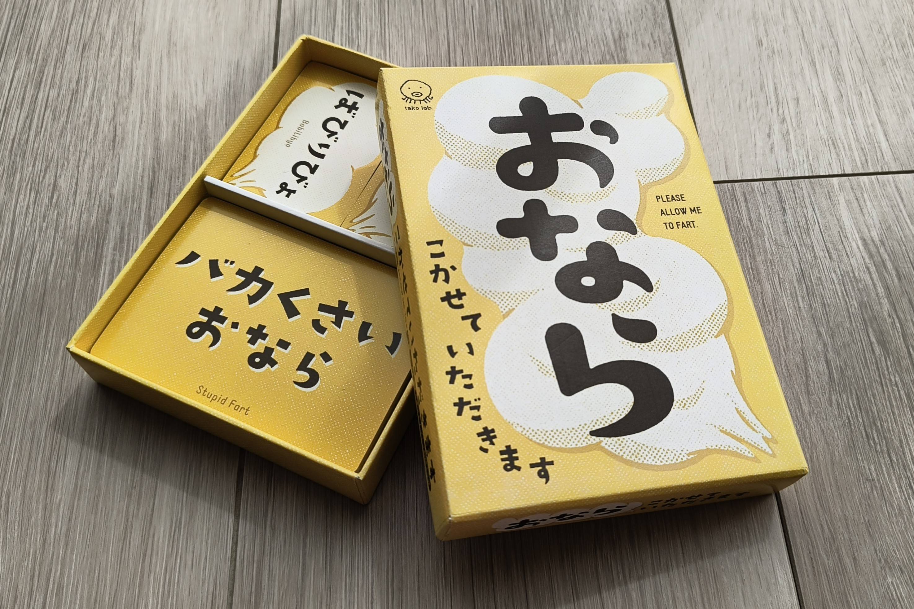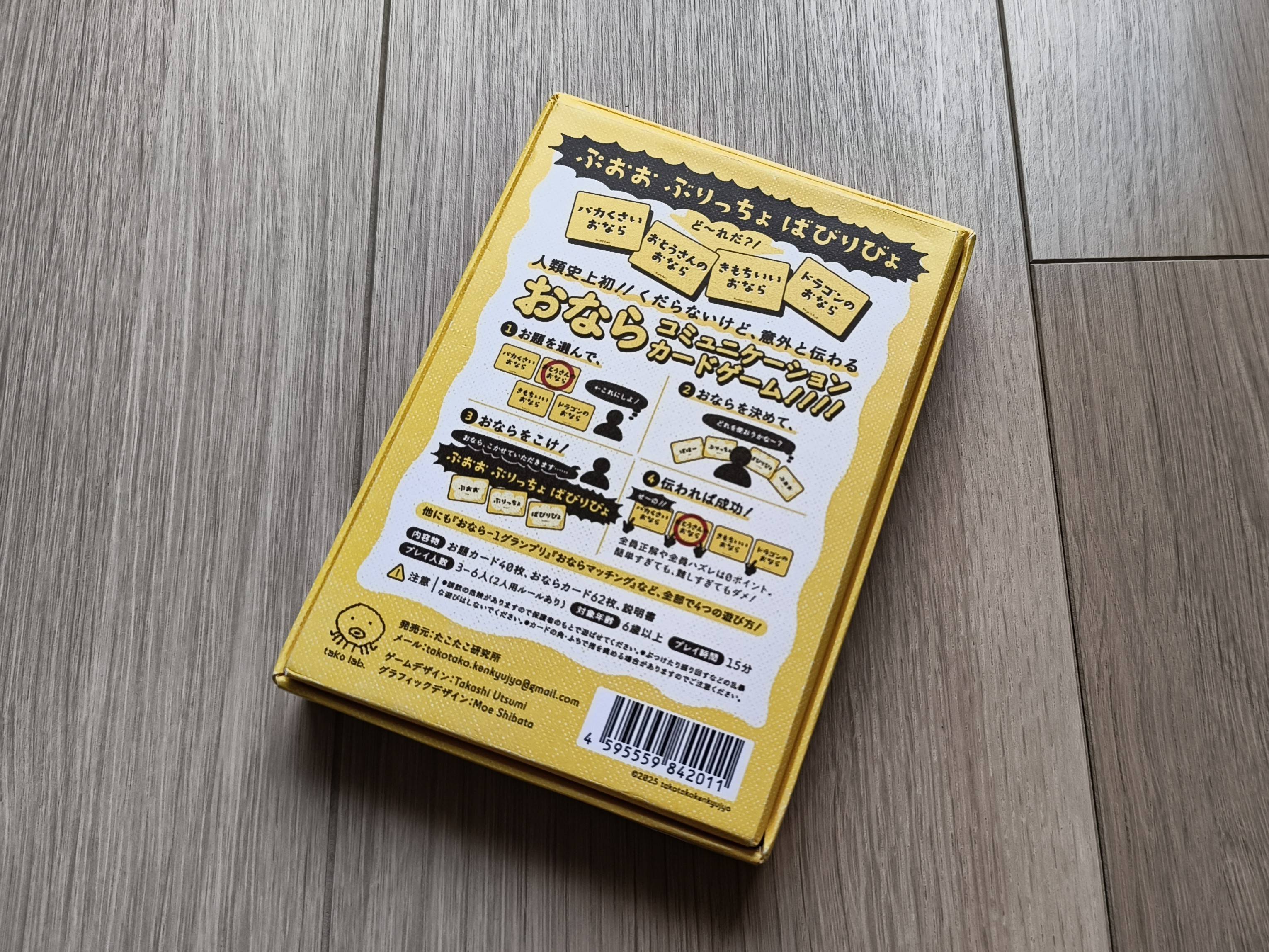 - 内容物:説明書1部、おならカード40枚、お題カード62枚