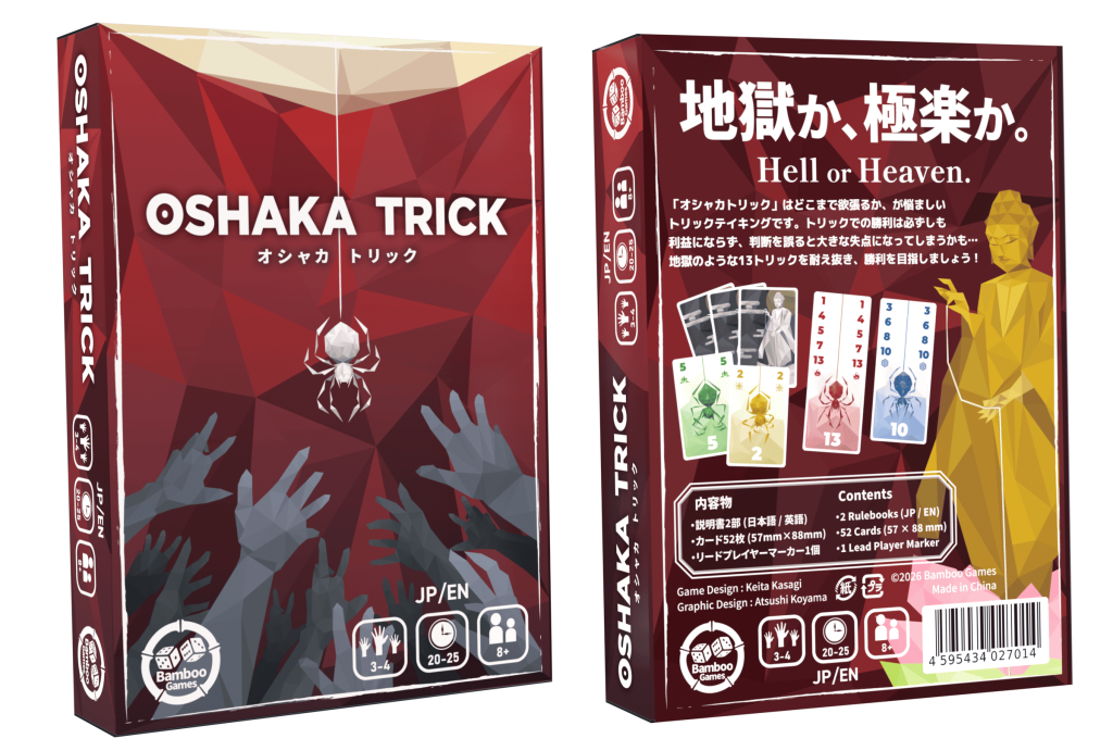 - 『オシャカトリック』はどこまで欲張るかが悩ましいトリックテイキングゲームです。