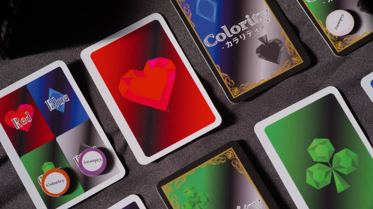Colorityで使用するのは、「裏面に2色、表面に50%の確率で裏面のどちらかの色」が書かれたカラーカード。