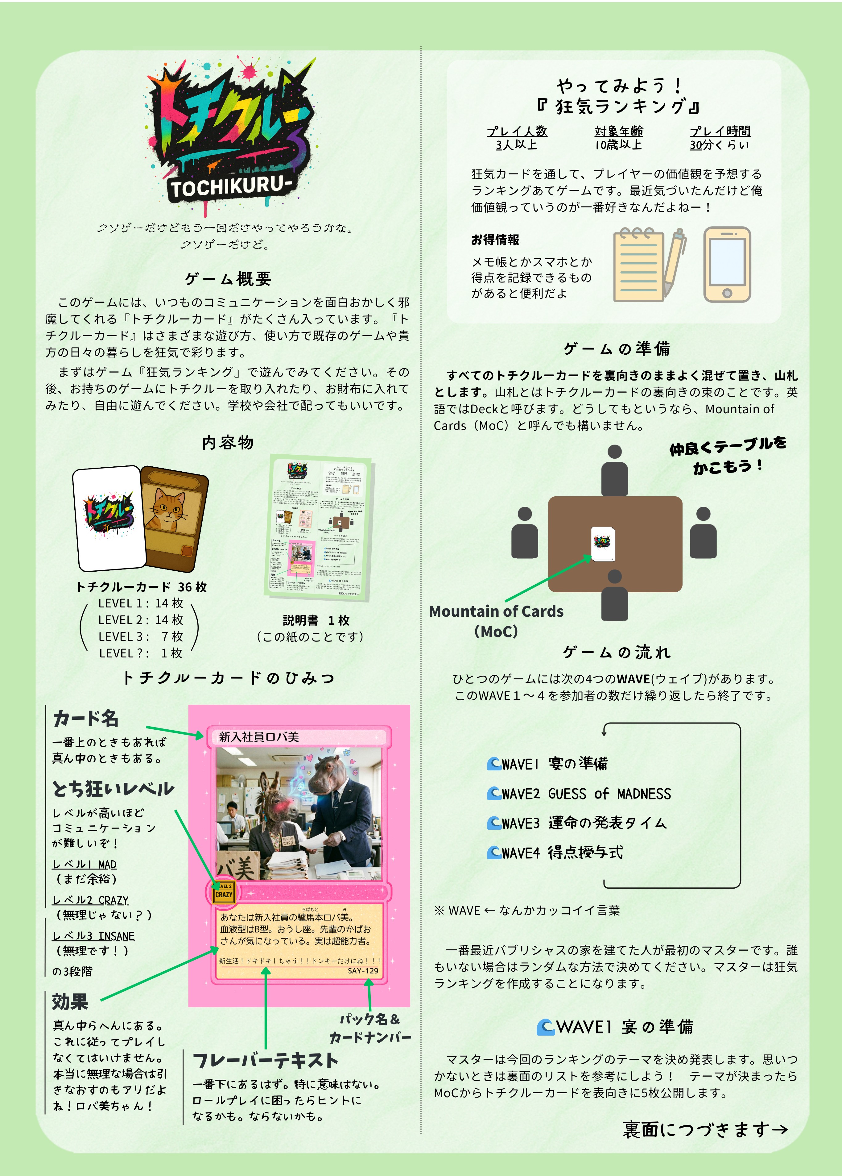 『トチクルーカード』はさまざまな遊び方、使い方で既存のゲームや貴方の日々の暮らしを狂気で彩ります!!