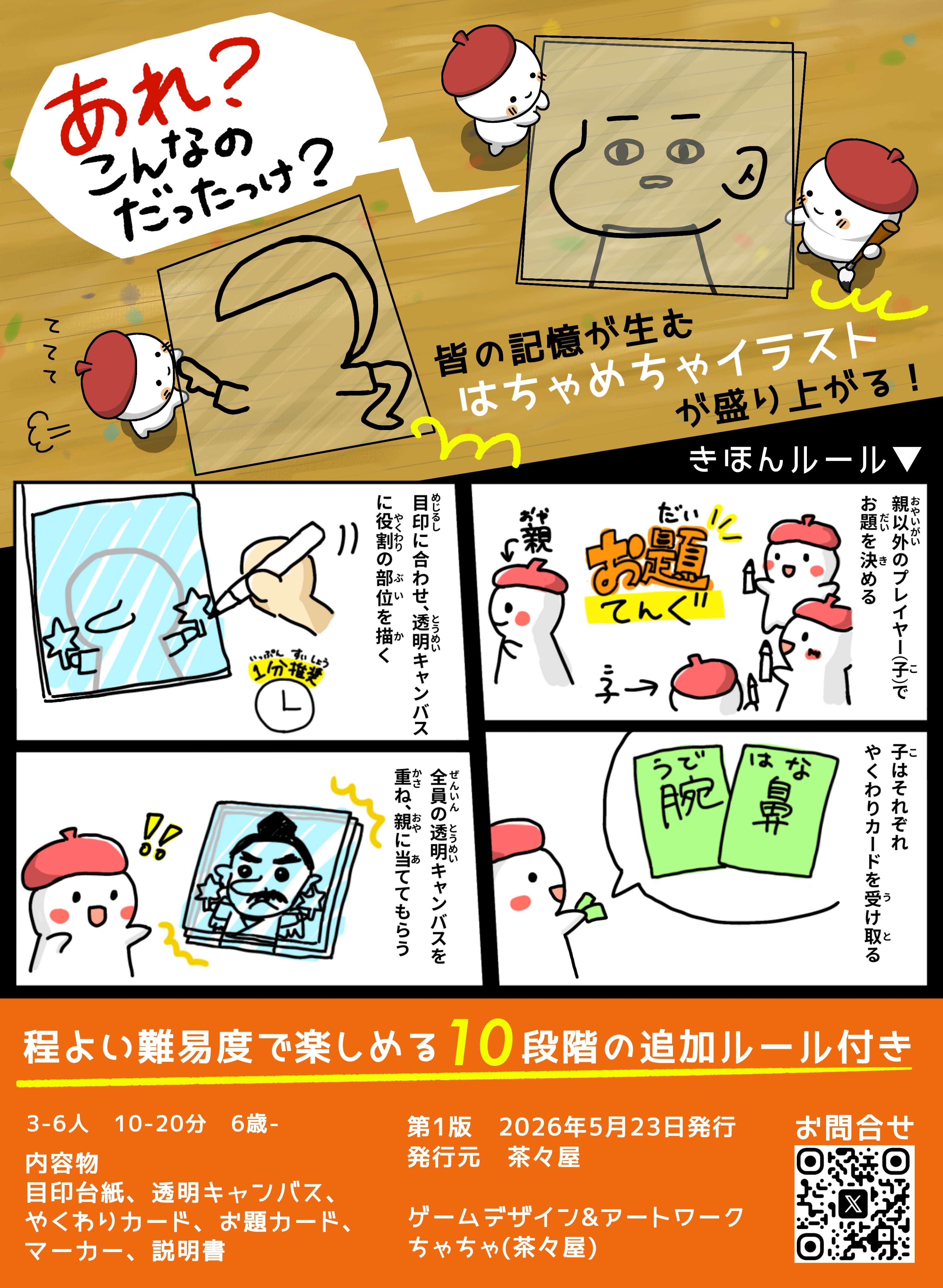 • イラストが得意な人から苦手な人まで楽しめる、10段階の追加ルール付きです🎨