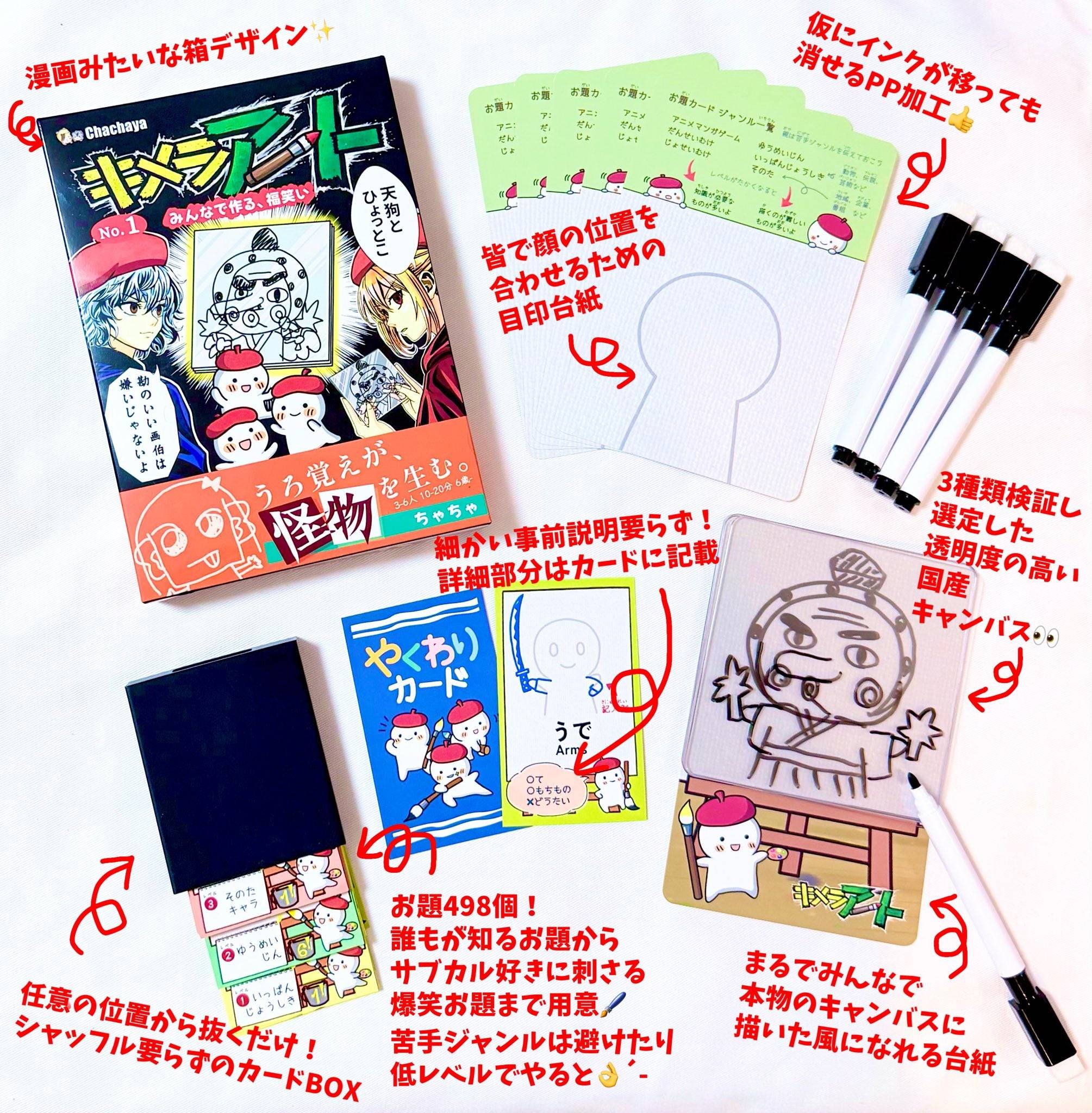 • 用意されたお題なんと498種類!👀自分でお題も作れます。また、選別したこだわりの国産透明シートを使用しています✨